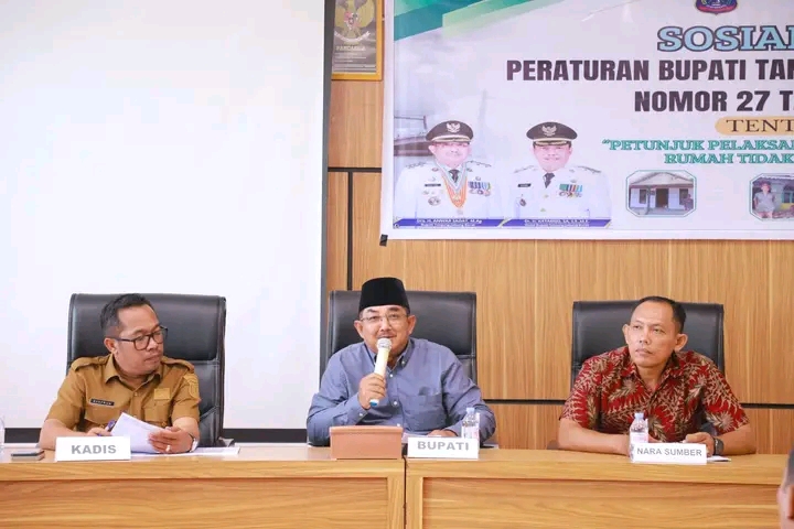 KUALATUNGKAL Lj – Berlokasi di Aula Kantor Bappeda Kabupaten Tanjung Jabung Barat, Bupati Anwar Sadat mengintruksikan kepada para Camat dan kepala Desa untuk pastikan pendataan Petunjuk Pelaksanaan Penanganan Rumah Tidak Layak Huni (RTLH) dengan akurat.”Kepada para camat dan kepala desa melakukan pendataan yang akurat dan valid, serta pastikan bantuan RTLH disalurkan tepat sasaran. Kita ingin bantuan ini benar-benar menyentuh masyarakat yang membutuhkan dan berdampak nyata pada peningkatan kesejahteraan mereka,” tegas Bupati Tanjung Jabung Barat, Drs. H. Anwar Sadat, M.Ag. Selasa (16/9). Lanjut dikatakan Bupati, dia juga mensosialisasikan tentang Peraturan Bupati Nomor 27 Tahun 2023 tentang Petunjuk Pelaksanaan Penanganan Rumah Tidak Layak Huni (RTLH), sehingga Camat dan Kades tahu dan paham akan peraturan tersebut. Menurut Bupati, keberhasilan program RTLH sangat bergantung pada pendataan yang tepat dan valid dari Camat serta Kepala Desa agar bantuan yang diberikan dapat terealisasi secara efektif dan efisien kepada warga yang benar-benar membutuhkan.”Program RTLH ini merupakan prioritas pemerintah daerah dalam mempercepat pengentasan kemiskinan dan meningkatkan kualitas hidup masyarakat melalui peningkatan kualitas hunian,” ujar Bupati Anwar Sadat. Lebih lanjut, Bupati menjelaskan Perbup Nomor 27 Tahun 2023 mengatur mekanisme pendataan, kriteria RTLH, peran masyarakat, sumber pendanaan, dan tata cara pelaksanaan bantuan yang harus dilaksanakan dengan baik agar program tepat sasaran. Ia juga mengajak sinergi berbagai pihak, mulai pemerintah desa, lembaga swadaya masyarakat, sektor swasta, hingga masyarakat itu sendiri untuk mendukung kelancaran program ini. Bupati berharap semua peserta yang mengikuti sosialisasi dapat memahami isi Perbup tersebut agar tidak terjadi kesalahan persepsi maupun hambatan administratif saat pelaksanaan di lapangan. Dengan instruksi tegas ini, Bupati Anwar Sadat menegaskan komitmen Pemkab Tanjung Jabung Barat dalam mewujudkan rumah layak bagi seluruh warganya melalui kerja sama dan pendataan yang akurat. Kegiatan tersebut dihadiri Kepala Dinas Perakim Tanjab Barat, Kepala Bappeda Tanjab Barat, narasumber dan para Camat.(Adv)